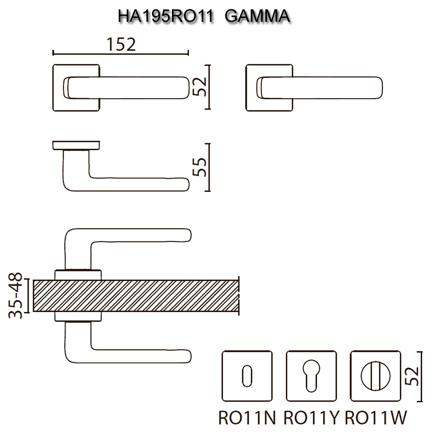 дверная, ручка, нажимная, рычажная, розетка, HA195RO11 ELX1 GAMMA, брашированный, графит