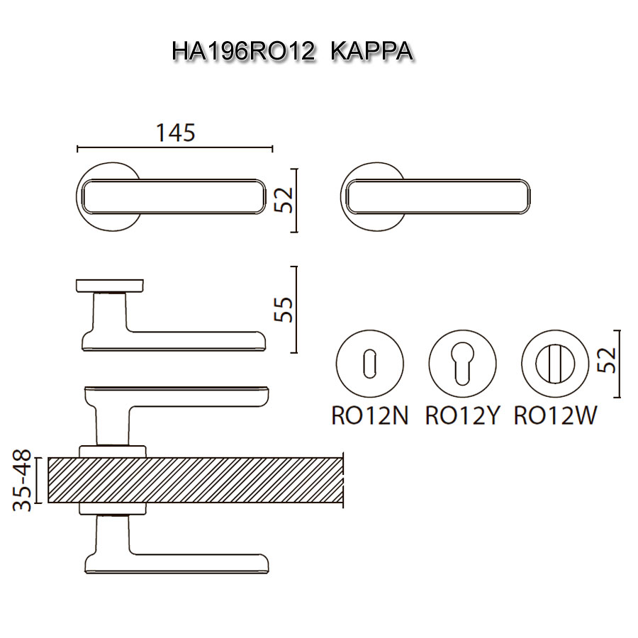 дверная, ручка, нажимная, рычажная, розетка, HA196RO12 AL6 KAPPA, черный