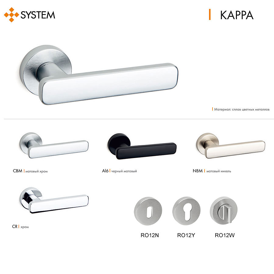 Дополнительно к ручкам можно приобрести накладки на личинку замка RO12N, RO12Y; накладки с поворотной кнопкой RO12W6