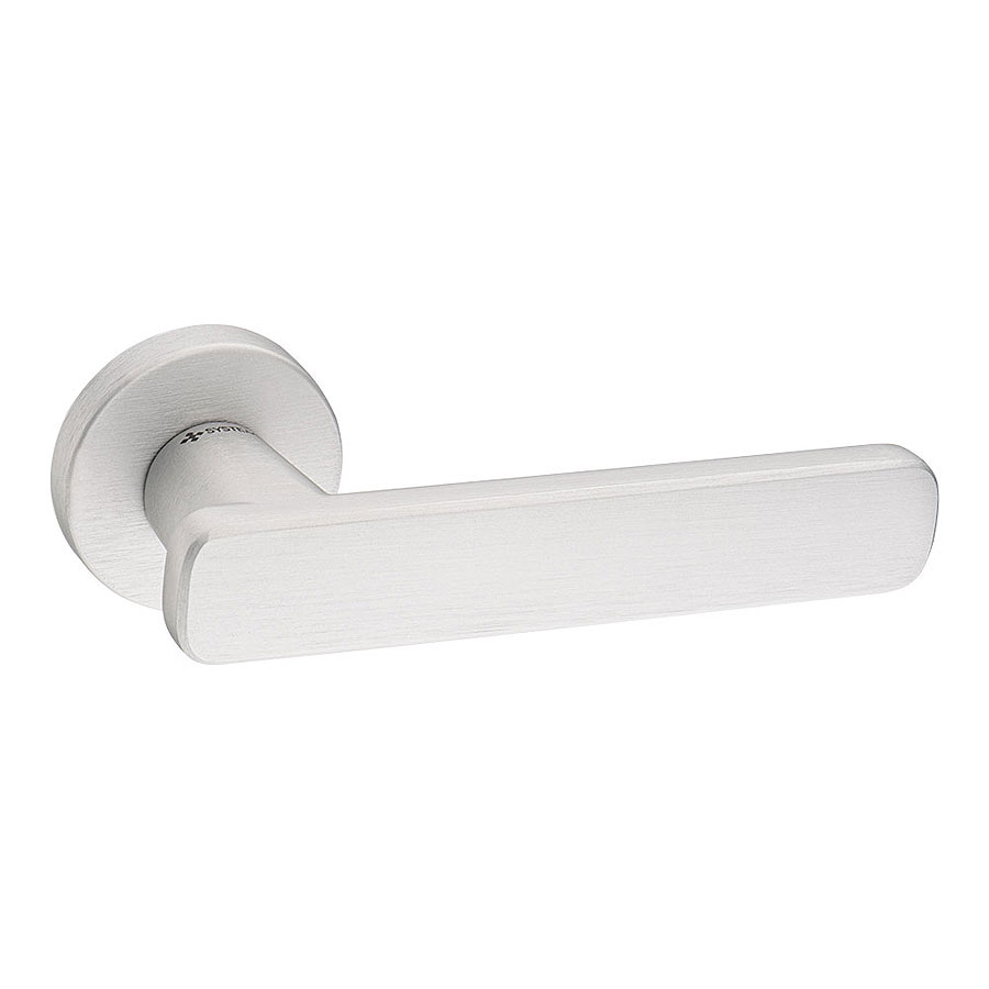 Дверная ручка нажимная рычажная на розетке (фланец квадрат 8 мм) модель HA196RO12 ELX10 KAPPA цвет брашированный алюминий материал цамак производство Турция.