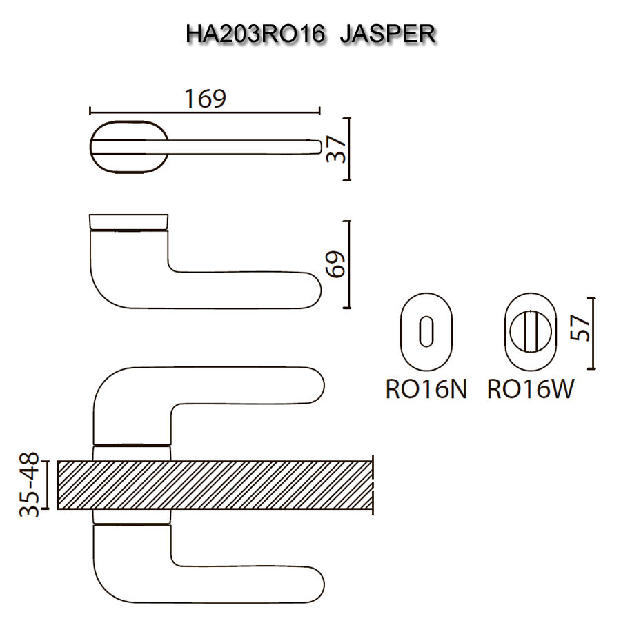 дверная, ручка, нажимная, рычажная, розетка, HA203RO16 ELX10 JASPER, брашированный, алюминий
