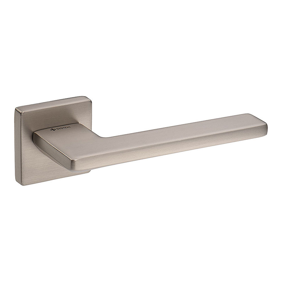 Дверная ручка нажимная рычажная на розетке (фланец квадрат 8 мм) модель HA209RO11 NBM SARP цвет брашированный матовый никель материал цамак производство Турция.