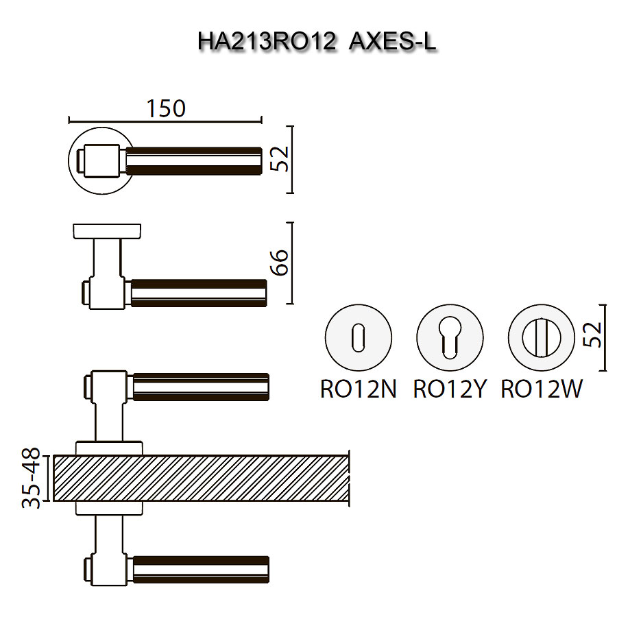 дверная, ручка, нажимная, рычажная, розетка, HA213RO12 ABM AXES-L, состаренная, латунь