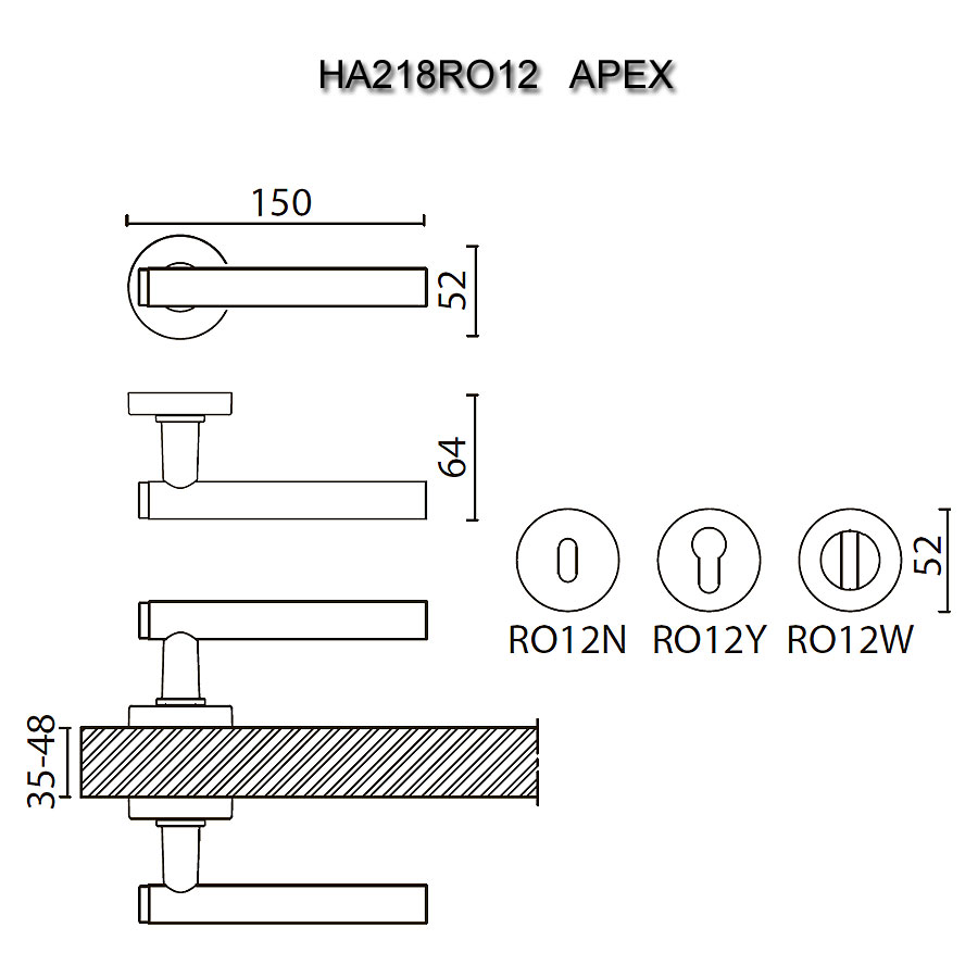 дверная, ручка, нажимная, рычажная, розетка, HA218RO12 AL6 APEX, черный