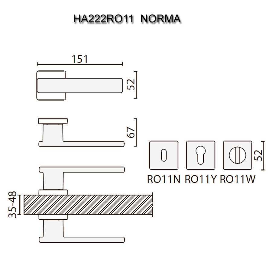 дверная, ручка, нажимная, рычажная, розетка, HA222RO11 BBN NORMA, черный, матовый, никель