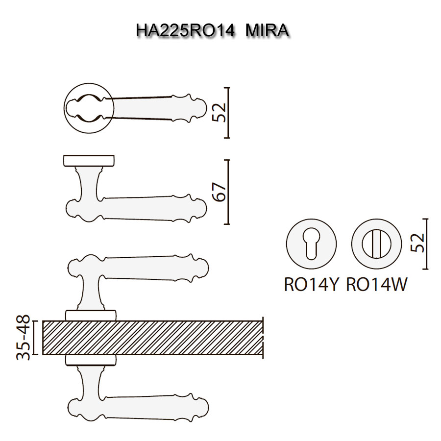 Дополнительно к ручкам можно приобрести накладки на личинку замка RO14Y; накладки с поворотной кнопкой RO14W6