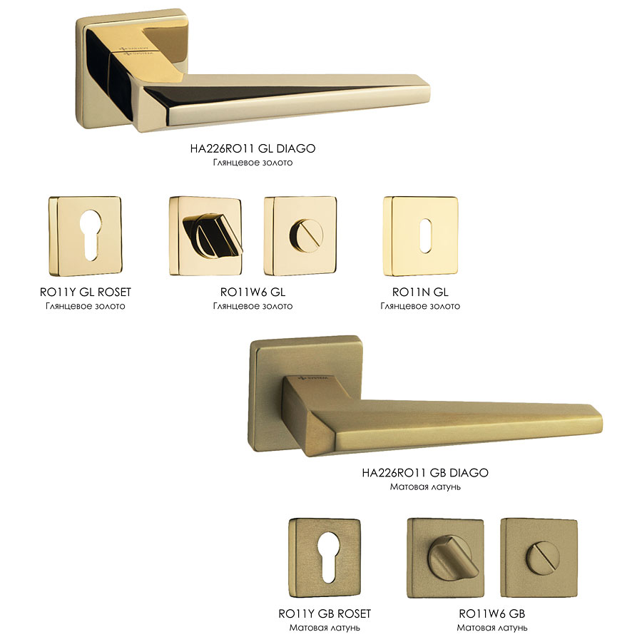дверная, ручка, нажимная, рычажная, розетка, HA226RO11 GB DIAGO, матовая, латунь