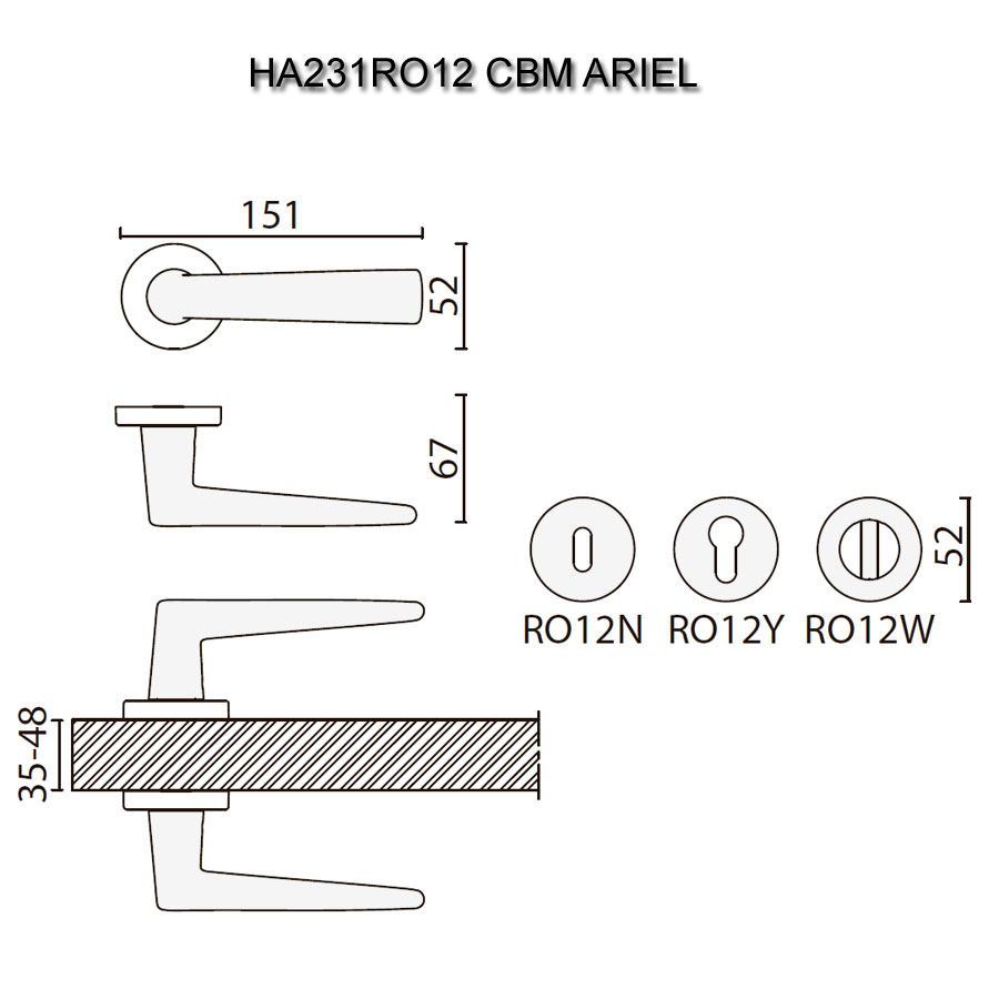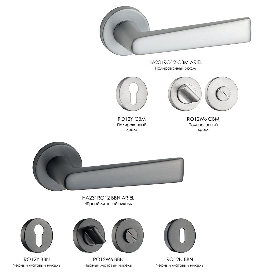 дверная, ручка, нажимная, рычажная, розетка, HA231RO12 BBN ARIEL, черный, матовый, никель