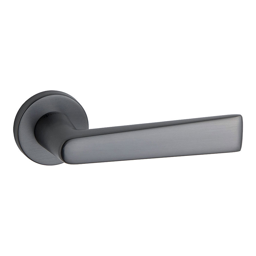 Дверная ручка нажимная рычажная на розетке (фланец квадрат 8 мм) модель HA231RO12 BBN ARIEL цвет черный матовый никель материал цамак производство Турция.