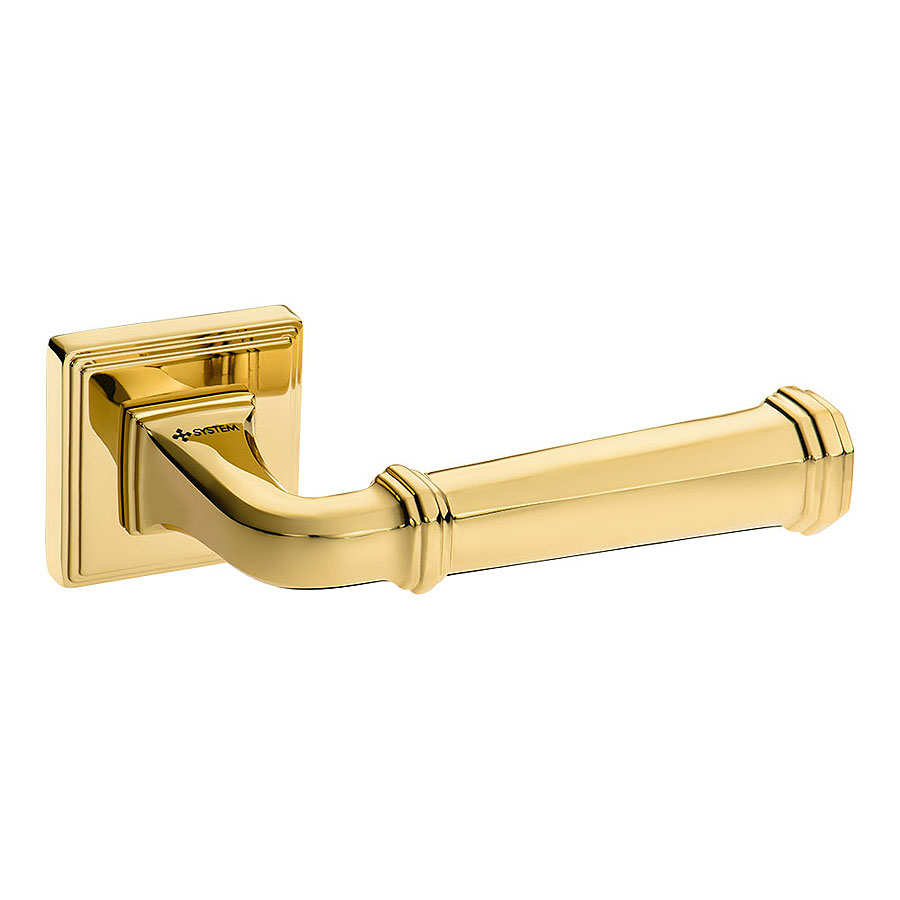Дверная ручка нажимная рычажная на розетке (фланец квадрат 8 мм) модель HA233RO17 GL RODIN цвет глянцевое золото материал цамак производство Турция.