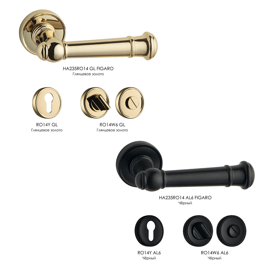 дверная, ручка, нажимная, рычажная, розетка, HA235RO14 GL FIGARO, глянцевое, золото