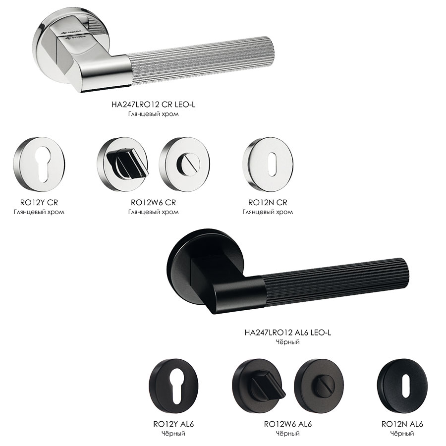 дверная, ручка, нажимная, рычажная, розетка, HA247LRO12 CR LEO-L, глянцевый, хром