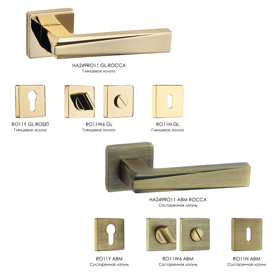 дверная, ручка, нажимная, рычажная, розетка, HA249RO11 GL ROCCA, глянцевое, золото