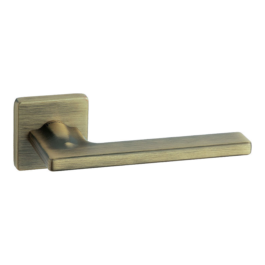 Дверная ручка нажимная рычажная на розетке (фланец квадрат 8 мм) модель HA251RO11 ABM PAN цвет состаренная латунь материал цамак производство Турция.