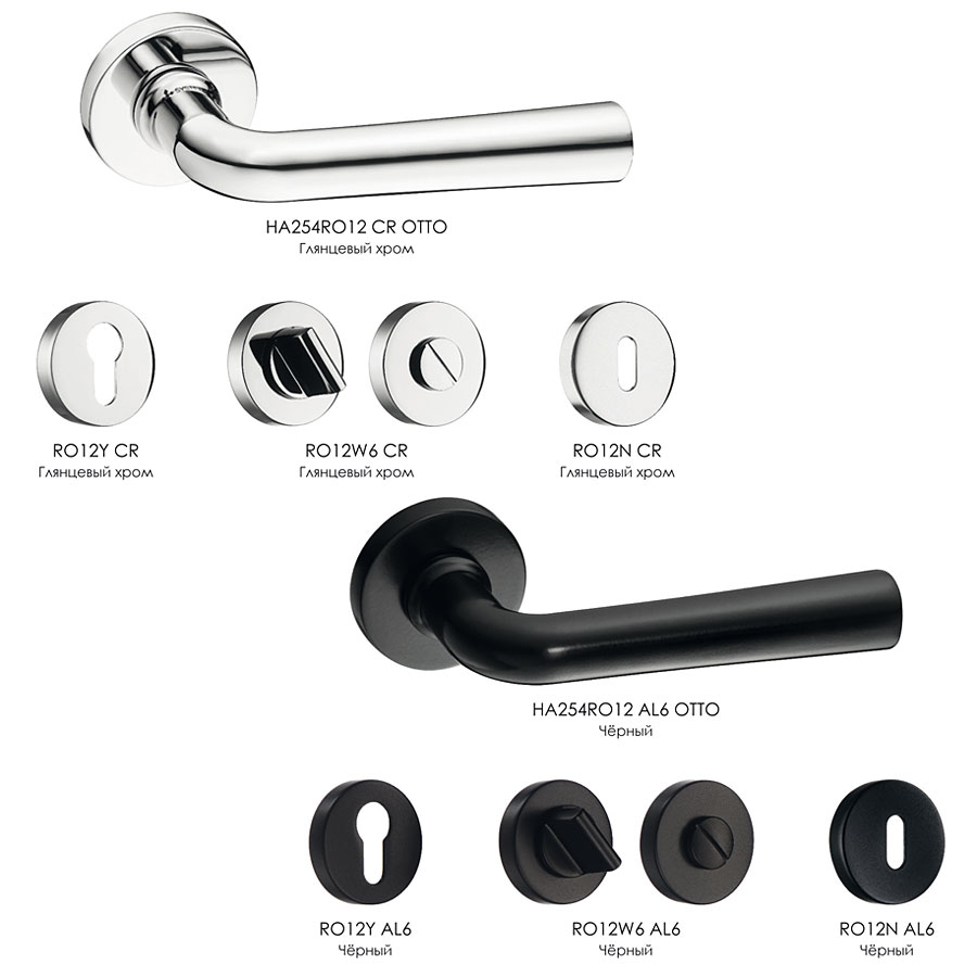 дверная, ручка, нажимная, рычажная, розетка, HA254RO12 CR OTTO, глянцевый, хром