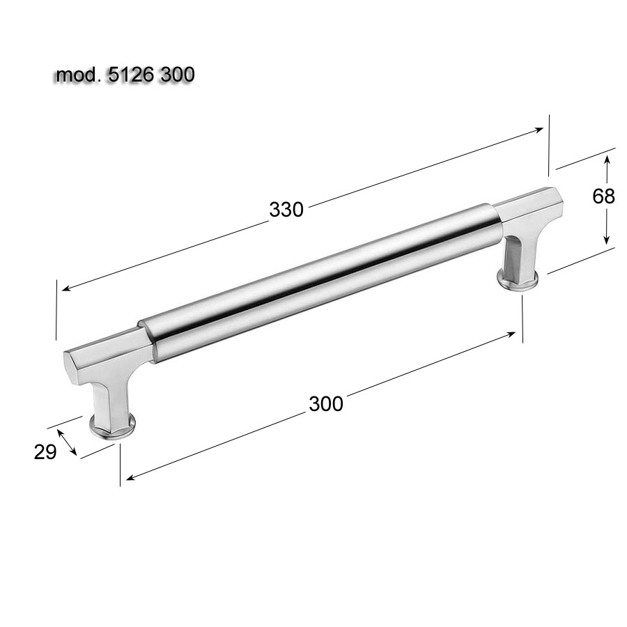 Дверная ручка скоба 5126 300MP08 цвет сатинированный никель длина 330 мм, крепление 300 мм