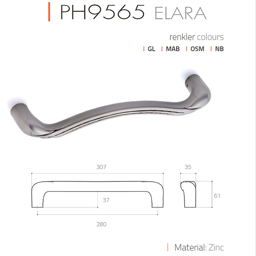 Дверная ручка скоба модель PH9565 0280 NB цвет брашированный никель материал цамак производство Турция.