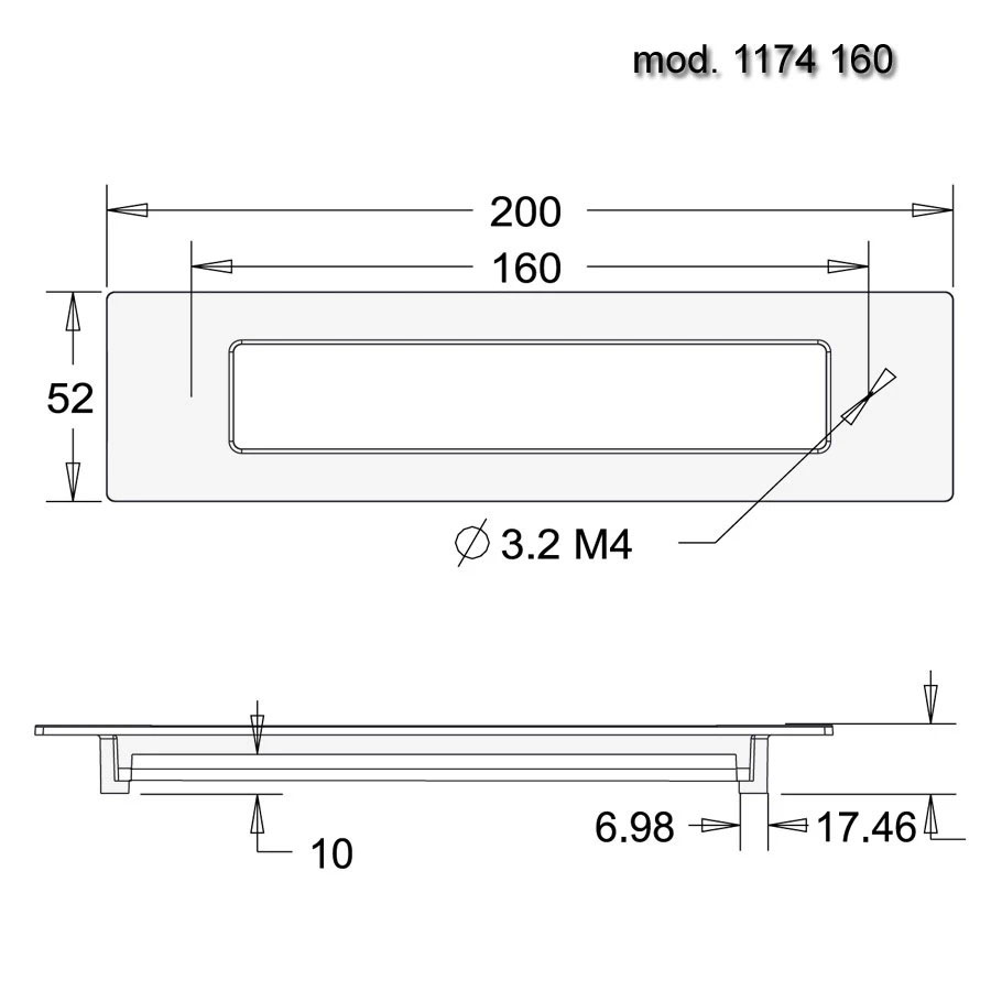 Дверная ручка врезная прямоугольная модель 1174 160MP24 цвет черный материал цамак производство Турция.