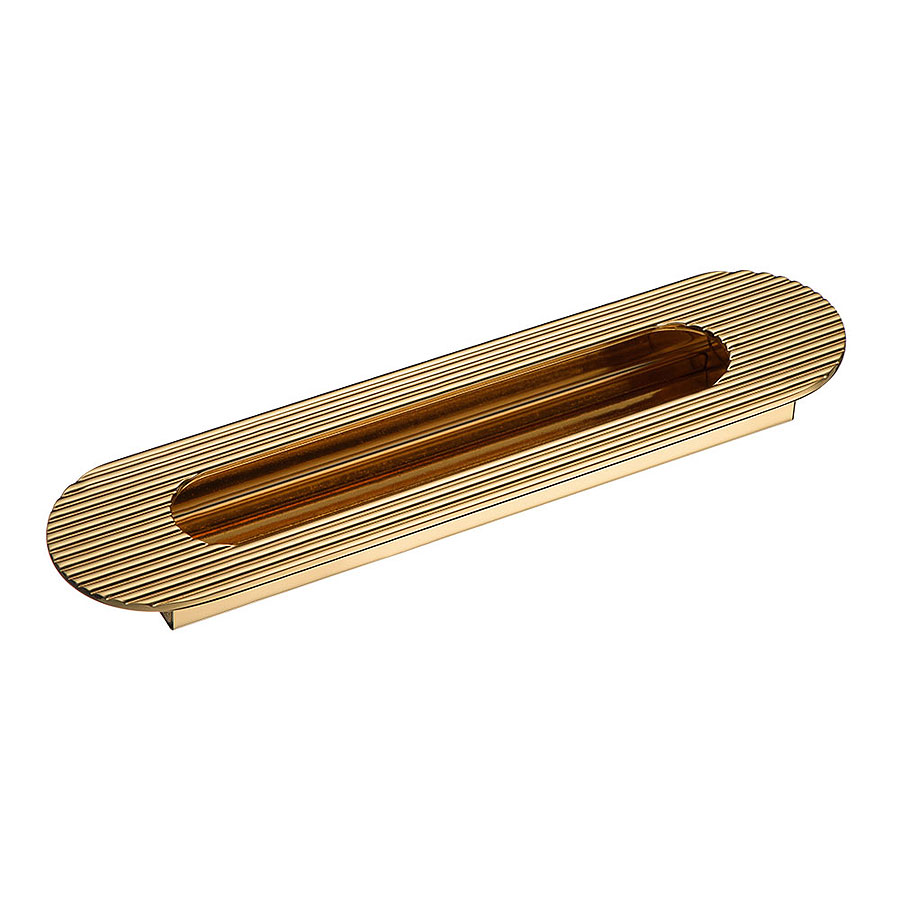 Дверная ручка врезная овальная с рифлением модель 1175 160MP11 цвет глянцевое золото материал цамак производство Турция.