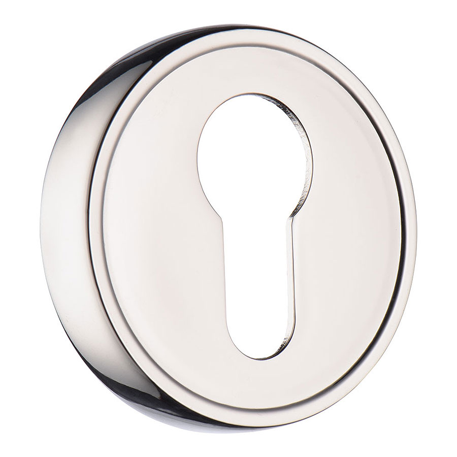 Накладка круглая с цилиндрическим отверстием личинки замка двери модель RO14Y PN ROSET цвет глянцевый никель материал цамак производство Турция.