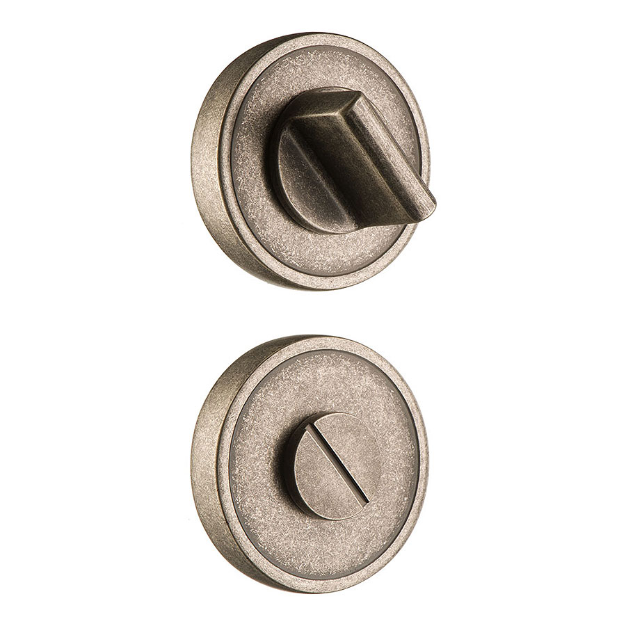 Накладки круглые с поворотной кнопкой для двери межкомнатной, ванной, туалета RO14W6 OSM ROSET цвет старое серебро материал сталь, цамак производство Турция.