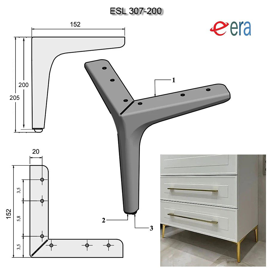 опора, ножка, сталь, ESL 307-200 Chrome, глянцевый, хром