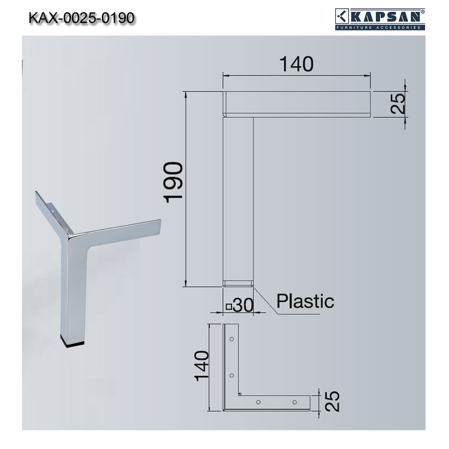 Опора мебельная стиль модерн модель KAX-0025-0190-A01 цвет глянцевый хром материал сталь производство Турция.