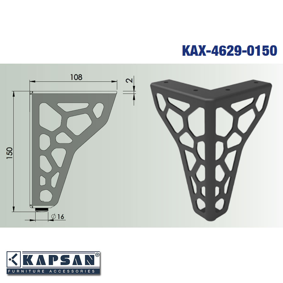 Опора мебельная резная модель KAX-4629-0150-B13 цвет черный материал сталь производство Турция.