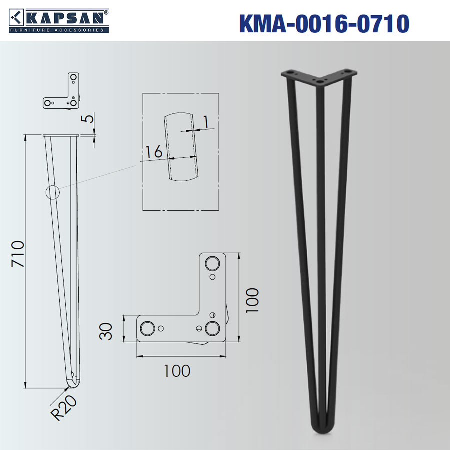 мебельная, опора, ножка, сталь, KMA-0016-0710-B13, черный