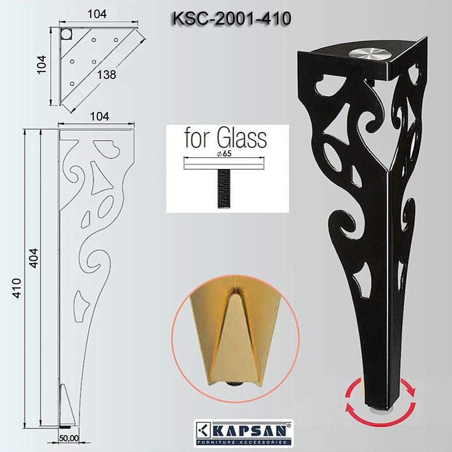Опора мебельная резная для стеклянной столешницы модель KSC-2001-410-C24 цвет черный материал сталь производство Турция.