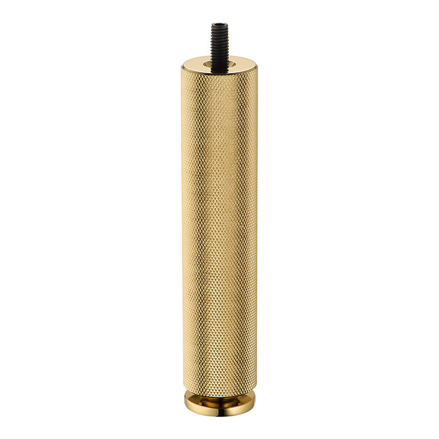 Опора мебельная форма цилиндр с насечкой регулируемая по высоте модель FL1010 0150 GL-GL цвет глянцевое золото материал алюминий производство Турция.