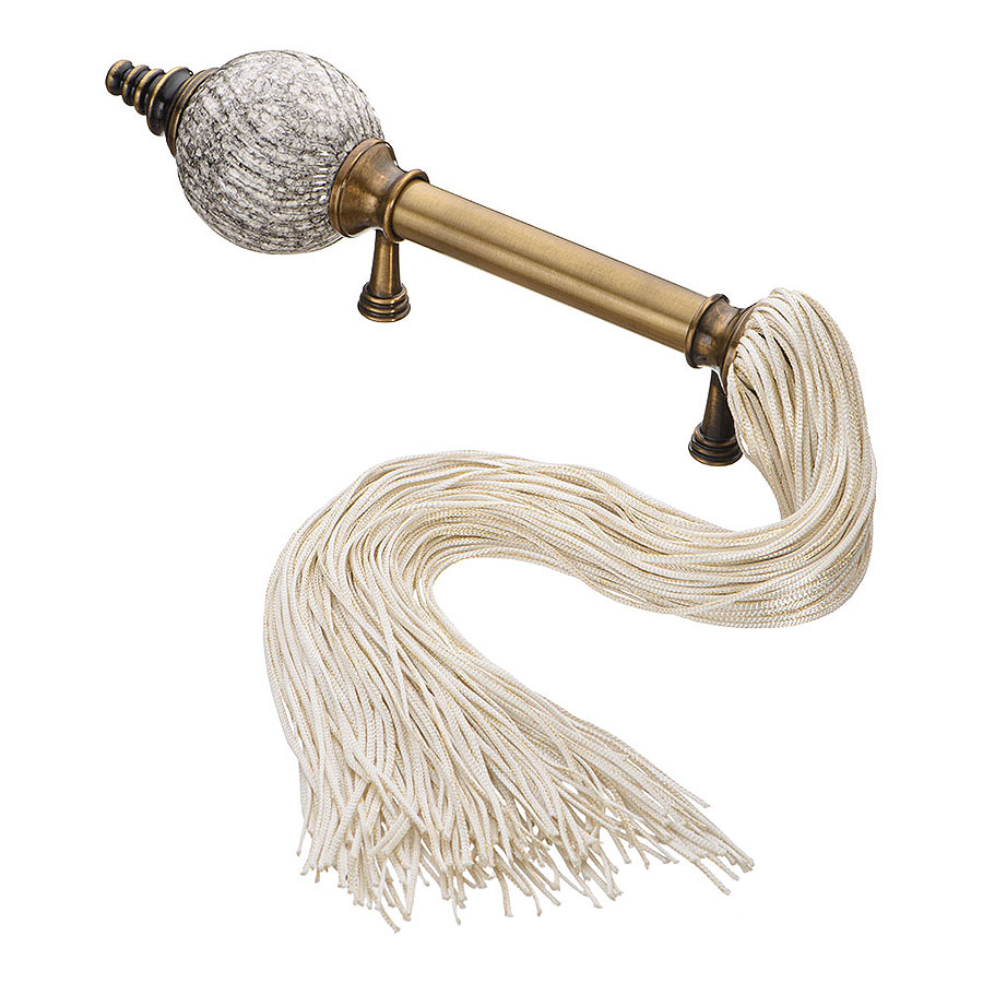 Мебельная ручка форма скоба коллекция Эксклюзив модель SULTAN-41-128-BLACK-KREM античная бронза, серая керамика, кремовые нити материал цамак, керамика производство Турция.
