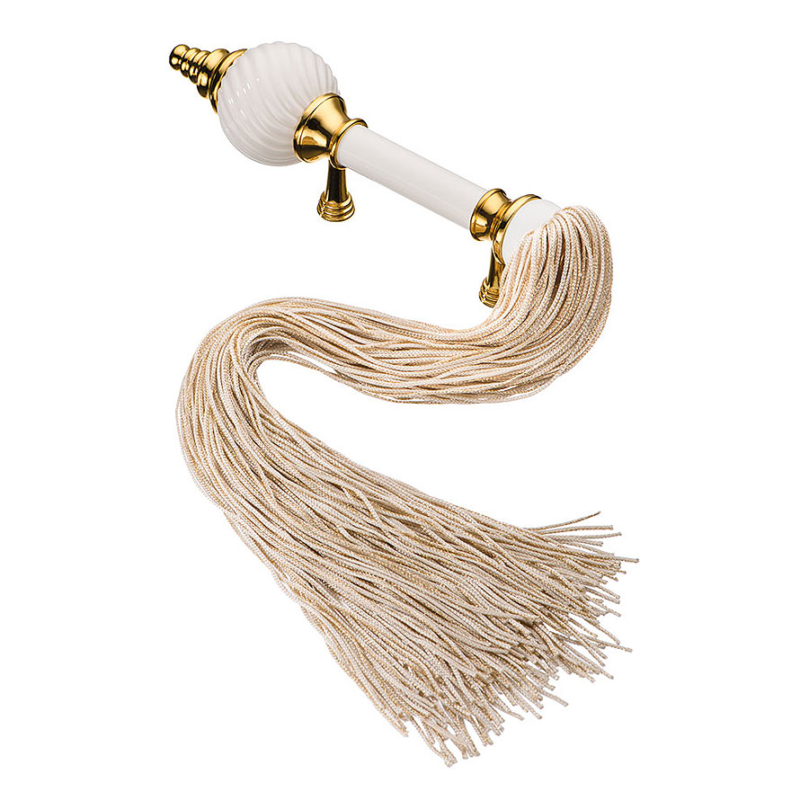Мебельная ручка форма скоба коллекция Эксклюзив модель SULTAN-69-96-WHITE-WHITE-KREM цвет глянцевое золото, белая керамика, кремовые нити материал цамак производство Турция.