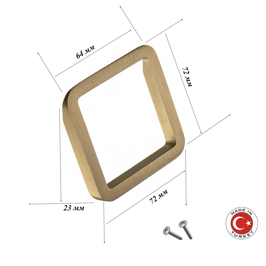 Мебельная ручка форма кольцо квадратное коллекция Геометрия модель 8230 0064 BB цвет матовое золото материал алюминий производство Турция.