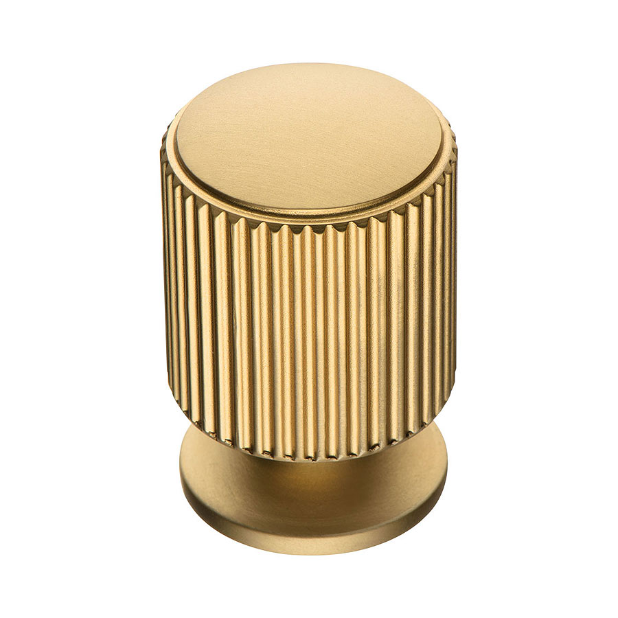 Мебельная ручка форма кнопка цилиндр с насечкой коллекция Модерн модель 1464 0026 GB отделка / цвет матовая латунь материал алюминий производство Турция.