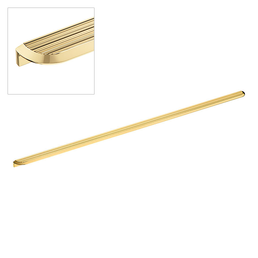 Мебельная ручка форма скоба Г-образная коллекция Геометрия модель 9060 0960 GL-GL цвет глянцевое золото материал алюминий производство Турция. Длина: 980 мм Ширина: 36 мм Высота: 23 мм Межосевое расстояние между отверстиями под крепеж: 960 мм ( ..