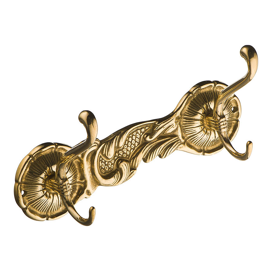 Вешалка мебельная двух рожковая форма Барокко стиль Классика модель 00101 цвет глянцевая латунь материал латунь производство Италия.