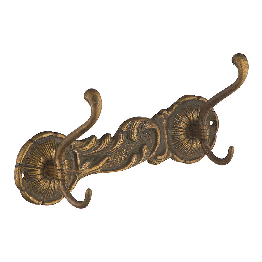 Вешалка мебельная двух рожковая форма Барокко стиль Классика модель 130101 цвет античная бронза материал латунь производство Италия.